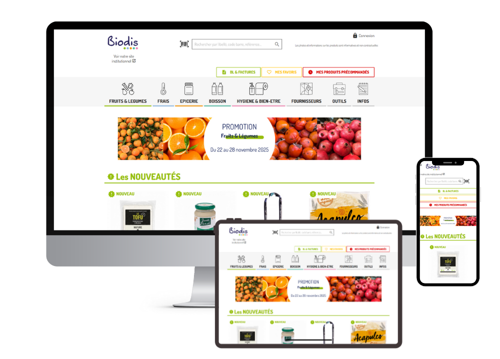 Biodis est une entreprise familiale et indépendante. Installée près de Rennes, dans un entrepôt de 10 000m² dont 4 000m² en température contrôlée, elle distribue auprès des magasins des produits frais, fruits et légumes, épicerie, boisson issus de l’agriculture biologique.